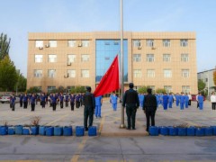喀什远东集团全体员工整齐列队,举行了庄严而降重的升国旗仪式